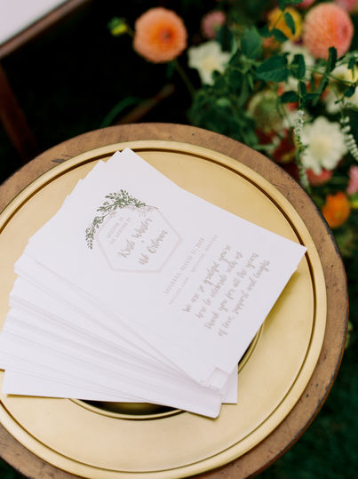 in the beginning we worked closely with kristi to custom design and illustrate a bridal logo/crest that tied in symbolism close to the bride and groom. the hexagon was a reflection of Kristi's engagement ring shape, and was carried across the remaining elements of the events. The crest also include the mountains (to symbolize where the bride and groom grew up), honey bee, and the full moon (because there would be a full moon on their wedding night), all reflective of the exciting wedding weekend to come. notice their initials tucked nicely into the center mountain peak.